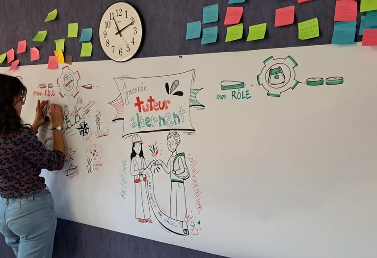 Visualisez vos idées et concepts grâce à la facilitation graphique en direct : en atelier collaboratifs, brainstorming, réunion d'équipe, conférence.