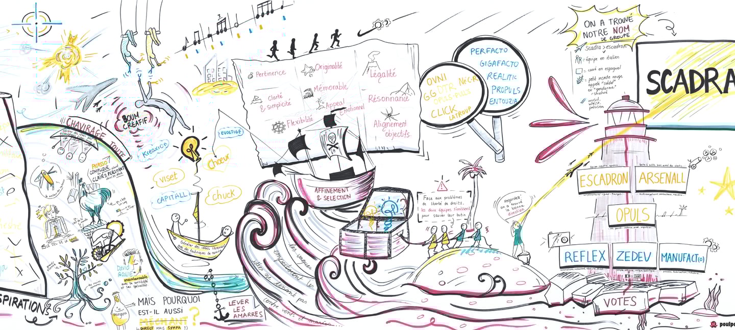 Des outils et supports visuels sur-mesure et ludique pour favoriser l'intelligence collective et l'émergence des idées.