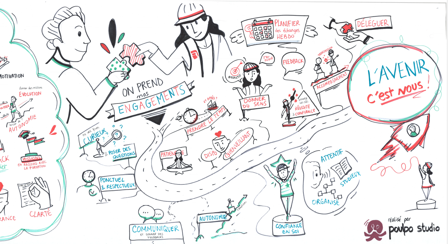 ”L'atelier organisé par Poulpo Studio a permis de renforcer la cohésion et les liens entre nos tuteurs et leurs alternants en comprenant mieux les attentes de l'autre tout en permettant à l'entreprise d'accorder une vraie importance à l'apprentissage”